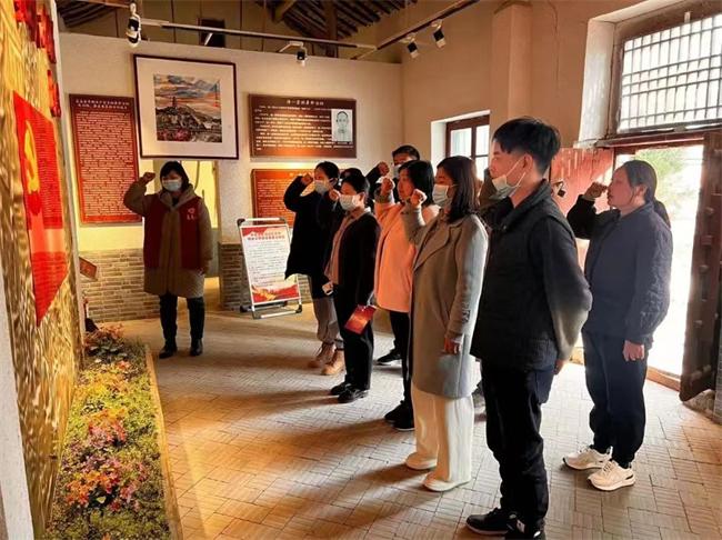 在劉橋縣委舊址展館內(nèi),全體黨員干部在講解員的介紹下再次回顧了徐一榮、徐一舟等先烈的革命事跡,在一張張老照片和一件件舊實(shí)物前,他們佇立凝神,沉思良久,深刻地感受到了革命先烈們崇高的革命理想、堅定的革命意志和大無畏的革命精神。最后,全體黨員面對鮮艷的黨旗,莊嚴(yán)地高舉右拳,飽含力量和激情,重溫入黨誓詞,用最鏗鏘的聲音表達(dá)最堅定的決心。