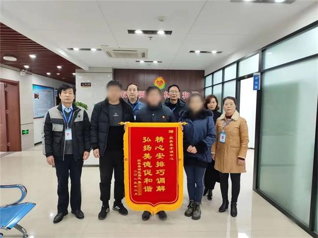 中新河南網(wǎng)3月16日電(王凱琪 張珂瑜)日前,新鄉(xiāng)市獲嘉縣城區(qū)居民張某及家人將一面印有“精心安排巧調(diào)解弘揚(yáng)美德促和諧”的錦旗送到了獲嘉縣矛調(diào)中心,對(duì)調(diào)解員在其父親家產(chǎn)分割一案中的努力付出表示感謝。