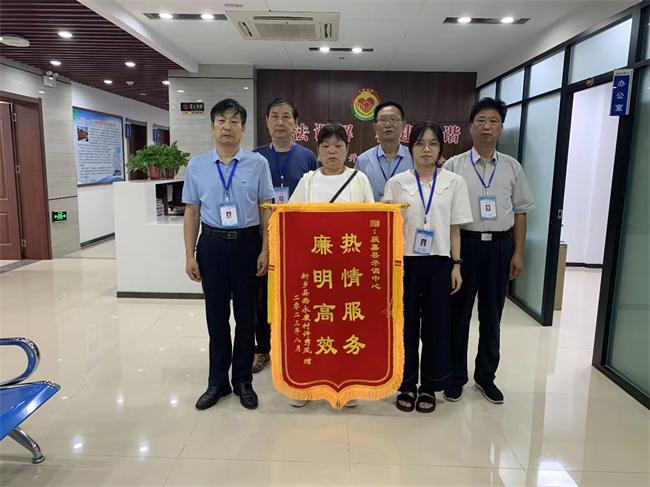 中新河南網(王凱琪 張珂瑜)8月25日,新鄉(xiāng)市新鄉(xiāng)縣合河鄉(xiāng)居民許某將一面印有“熱情服務廉明高效”的錦旗送到了獲嘉縣矛調中心,對調解員高效調解其愛人病亡補償一案表示感謝。