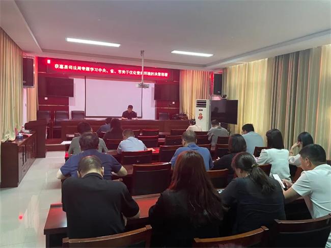 獲嘉縣司法局專題學(xué)習(xí)中央、省、市關(guān)于優(yōu)化營(yíng)商環(huán)境的決策部署