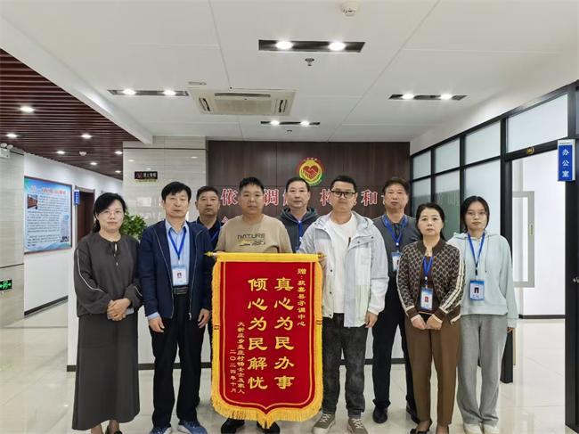 當(dāng)事各方對(duì)調(diào)解結(jié)果及調(diào)解員認(rèn)真負(fù)責(zé)的態(tài)度、無私奉獻(xiàn)的精神非常滿意。收到賠償款后,暢某及家人特到獲嘉縣矛調(diào)中心贈(zèng)送感謝錦旗!