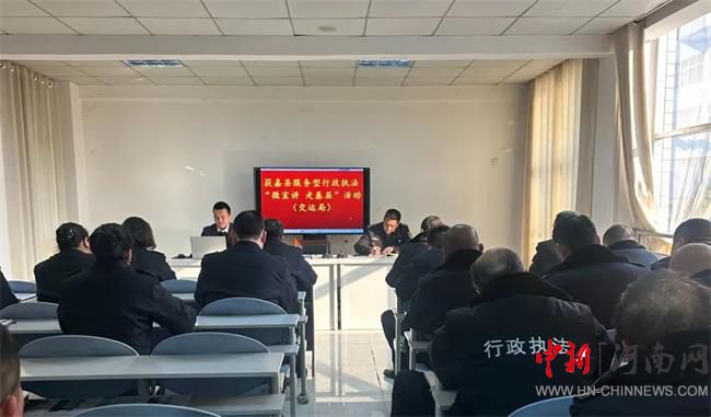 中新河南網(wǎng)(蘇清濤 張珂瑜)為深入推進(jìn)服務(wù)型行政執(zhí)法,進(jìn)一步提升基層行政執(zhí)法水平,12月17日,獲嘉縣在縣交運局開展服務(wù)型行政執(zhí)法“微宣講、走基層”活動。獲嘉縣司法局法制辦主任、服務(wù)型行政執(zhí)法授課員蘇清濤做宣講,交運局全體執(zhí)法隊員參加。