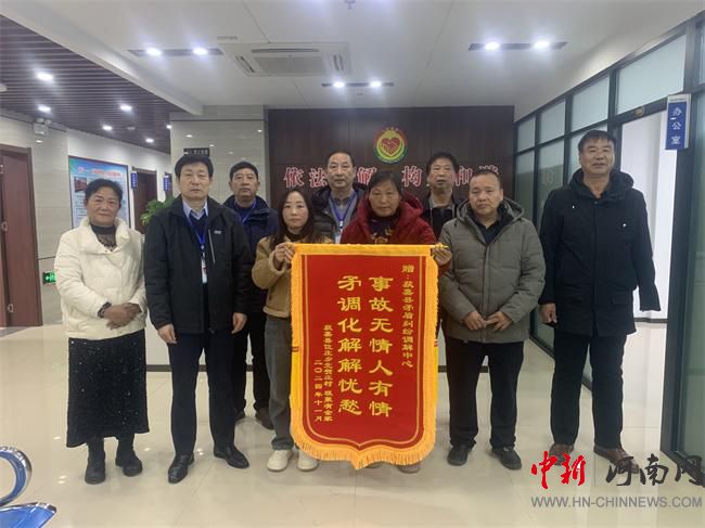 中新河南網(wǎng)(王凱琪 張珂瑜)日前,獲嘉縣位莊鄉(xiāng)居民程某一家來(lái)到獲嘉縣矛調(diào)中心,送上一面印有“事故無(wú)情人有情矛調(diào)化解解憂(yōu)愁”的錦旗,感謝獲嘉縣矛調(diào)中心在調(diào)解其家重大交通事故民事賠償案中的辛勤付出。