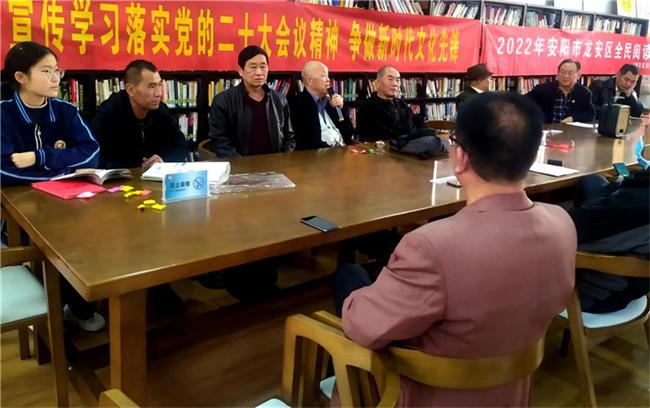 中新河南網(wǎng)11月10日電(趙力志 李泠頤)11月六日下午,安陽市龍安區(qū)龍圖街甲骨文書屋召開“宣傳學(xué)習(xí)落實二十大會議精神,爭做新時代文化先鋒座談會”。
