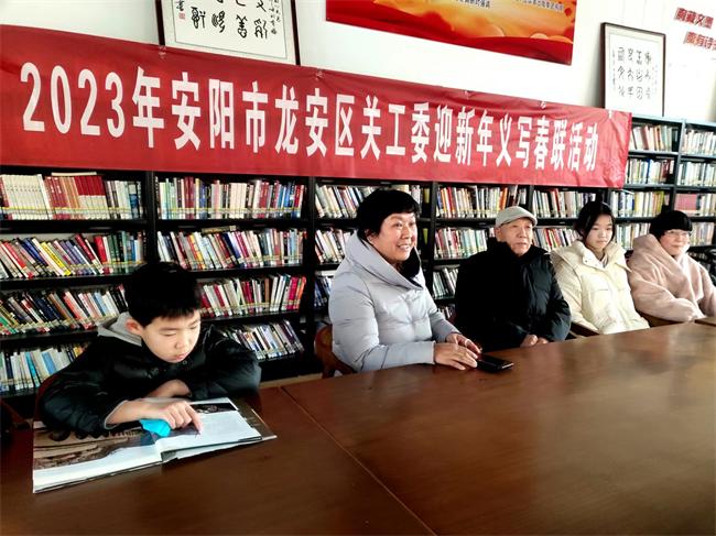 安陽市龍安區(qū)關(guān)心下一代工作委員會副主任王艷清,高度贊揚了座談會這一好的形式,贊揚了學生在甲骨文書屋既讀書又參加社會實踐和五老前輩的交流,贊揚了五老同志對青少年傳幫帶的精神和大學生、中學生認真聽前輩講故事、談體會的精神,并寄于新春的祝福。還組織老教師、學生現(xiàn)場義寫贈送春聯(lián),并留下紅紅火火喜迎新春的美好合影留念。