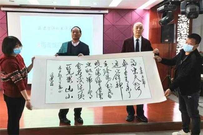 戚建莊先生還針對做人干事與作文書法之間的關(guān)系做了簡潔而深刻的講解。最后他表示,展覽結(jié)束之后,將39幅梅頌作品捐贈給”河南芊匯景觀工程有限公司,供其梅園的文化觀光建設(shè);另外贊美錦繡山河和祖國現(xiàn)代化建設(shè)成就的12幅詩書作品捐贈給鄭州博金書畫藝術(shù)博物館,以增強(qiáng)其文化底蘊(yùn)。