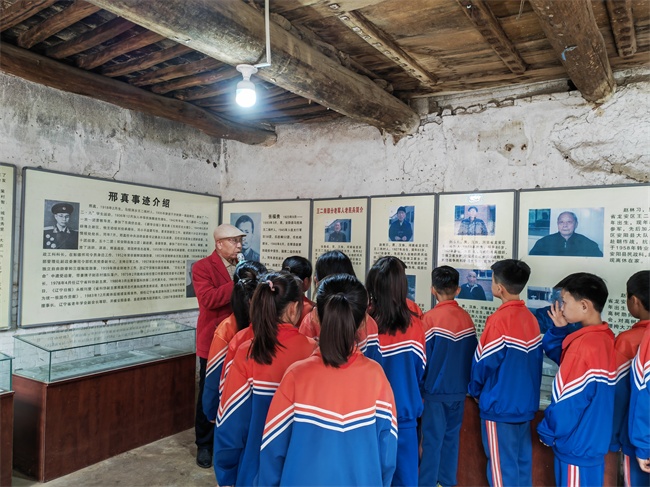 5月10日,該校四年級學(xué)生一行在安陽市龍安區(qū)王二崗村紅色文化教育基地進(jìn)行參觀學(xué)習(xí)。同學(xué)們在王二崗?fù)诵萁逃ぷ髡呲w力志的講解下了解到,王二崗紅色教育基地最初是由王二崗村里的老黨員、抗美援朝的老戰(zhàn)士、退休干部和村民志愿者為紀(jì)念高樹勛將軍而自發(fā)籌建的。同學(xué)們所在位置便是當(dāng)時高樹勛抗日指揮部舊址。