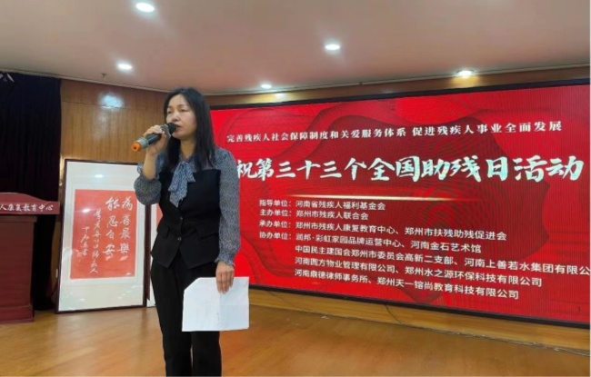在愛心捐助儀式上,鄭州市殘疾人康復(fù)教育中心主任劉正義、民建鄭州市委會專職副主委于珊出席活動并發(fā)言。民建高新二支部主委李麗君代表會員和愛心企業(yè)向鄭州市扶殘助殘促進(jìn)會捐贈價值三萬元的圖書和其他愛心物資。鄭州市扶殘助殘促進(jìn)會會長盧超向鄭州啟晨裝潢包裝科技有限責(zé)任有限公司、鄭州天一镕尚教育科技有限公司等愛心企業(yè)家頒發(fā)榮譽(yù)證書。殘疾人演員現(xiàn)場為愛心人士獻(xiàn)上精彩的文藝演出,通過不同形式的文藝節(jié)目,展現(xiàn)了他們自強(qiáng)不息追求美好生活的新時代奮斗精神。