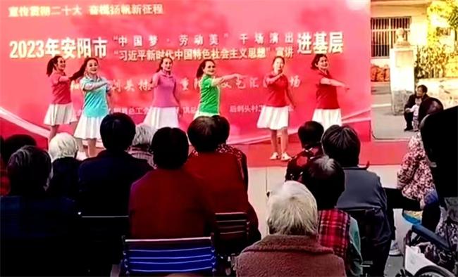 安陽縣永和鎮(zhèn)后刺頭村兩委干部在申志彬書記及駐村第一書記候松濤帶領下,邀請安陽市職工文藝團隊到村里演出。