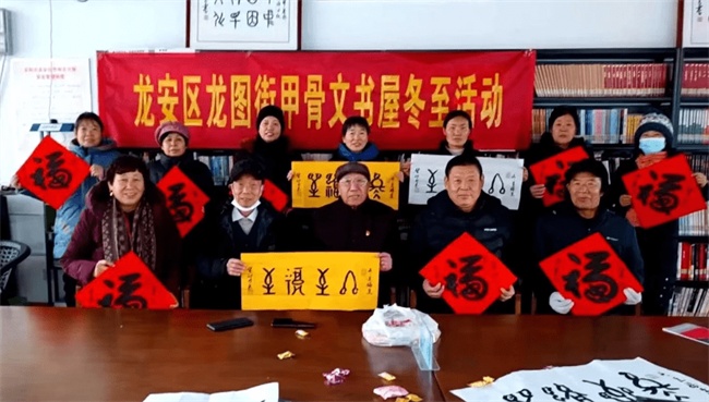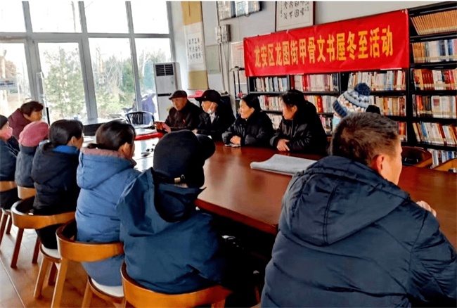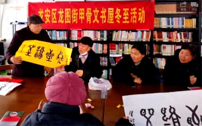 龍安區(qū)甲骨文書屋,2023年冬至下午三時(shí),來自社區(qū)的居民,老退休教師喜聚一起,暢談回憶歷年冬至的情景。