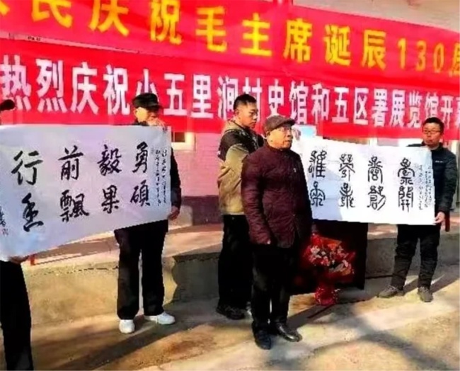 小五里澗村黨支部書記在致辭中說"我們一定不能忘記毛澤東主席建立新中國的豐功偉績,不能忘記革命前輩拋頭顱灑熱血的大無畏精神,今天小五澗村史館的開幕,就是讓我們的后人在黨的領(lǐng)導(dǎo)下,傳承紅色基因,不忘初心,牢記使命,在新時代、新征程中沿著二十大會議指引的的方向,制定的路線和方針政策奮勇前進(jìn),做好各項工作,為黨和人民爭光。