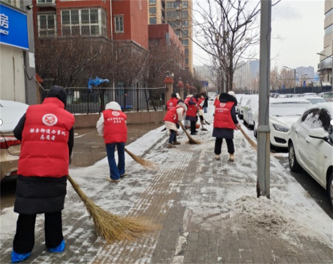 安陽銀杏大街街道辦事處平原社區(qū)清積雪保暢通護平安促和諧