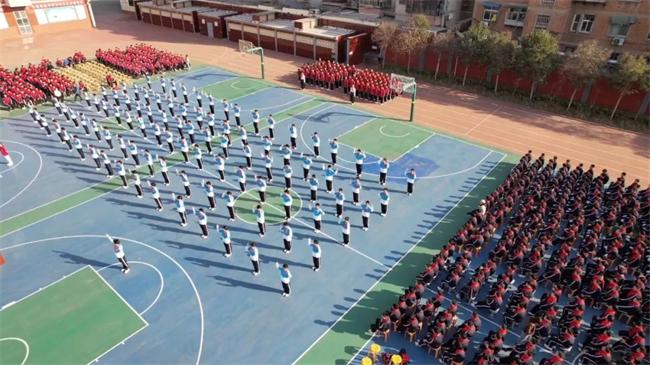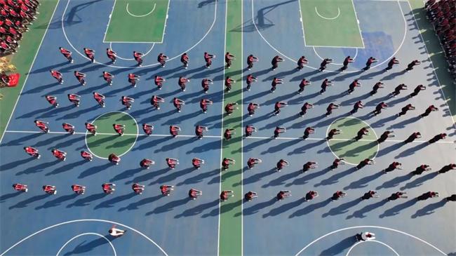 音樂響起,學(xué)生們精神抖擻、朝氣蓬勃,動作整齊劃一。揮臂,踢腿,彎腰,跳躍,用身體演出甲骨文字,一招一式都剛勁有力,舉手投足之間盡顯青春風(fēng)采,讓古老的中華文字煥發(fā)出獨(dú)特的魅力。