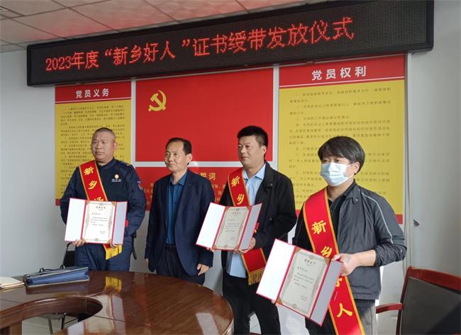 中新河南網(wǎng)(閆福生)4月11日,衛(wèi)輝市委宣傳部、衛(wèi)輝市文明辦為榮獲2023年度“新鄉(xiāng)好人”榮譽稱號的陳晨、柴守勇、趙軍華三位同志頒發(fā)榮譽證書。