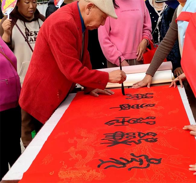 一幅幅用鳥(niǎo)蟲(chóng)篆、隸書(shū)、行書(shū)書(shū)寫(xiě)的“國(guó)家安全,人人有責(zé)”,“固夲強(qiáng)基保安全,應(yīng)急應(yīng)戰(zhàn)鑄鐵軍”,“維護(hù)正道正義,倡導(dǎo)新風(fēng)正氣”,“守正創(chuàng)新,以史潤(rùn)城”等作品。深受群眾歡迎。