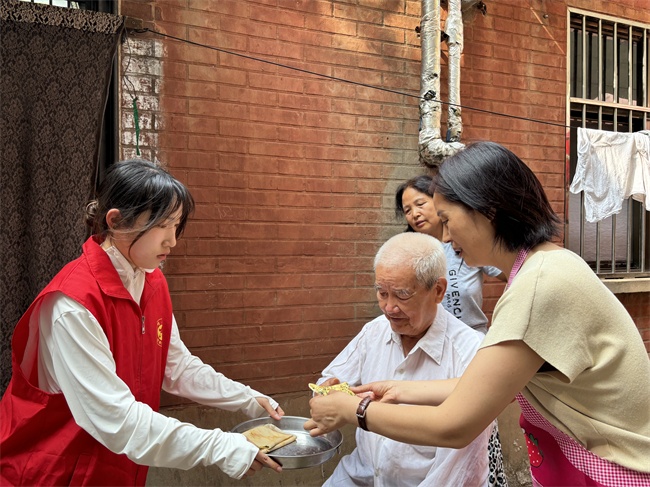 在活動現(xiàn)場,培訓師傅通過理論與實踐相結(jié)合傳授雜糧煎餅的制作方法和技巧,重點講解了面糊配方、甜面醬、脆餅的做法和攤煎餅手法,直到學員們掌握了操作的每一個流程,同時講解了雜糧餅的由來和故事,隨后,學員們親自動手操作,攤面、磕雞蛋、抹醬,一絲不茍,活動現(xiàn)場氣氛其樂融融。大家品嘗著自己做的酥香脆口煎餅,那個酥脆的“咔嚓”聲,伴隨著入口的各種食物,真的是太棒了。最后,社區(qū)工作人員和志愿者為行動不便的老人送去了雜糧煎餅,老人高興得合不攏嘴,非常感謝社區(qū)送來的溫暖。