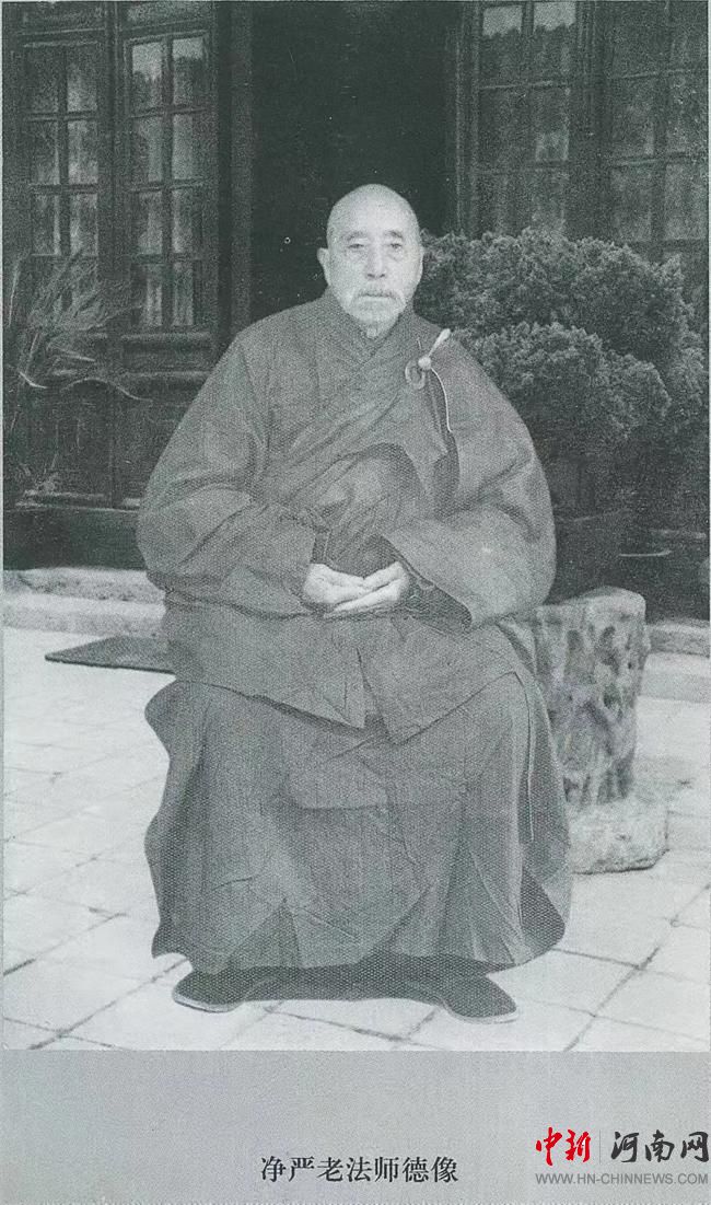 凈嚴(yán)法師,河南唐河縣人,生于一八九一年,一九九一年百歲示寂。凈嚴(yán)法師自幼跟隨父母信仰佛教,青年時(shí)在蘇州靈巖寺剃度出家,法名通西,號(hào)凈嚴(yán)。后在寧波天童寺受具戒。曾加入過北京道德學(xué)社,同法相唯識(shí)家韓德清組織“三時(shí)學(xué)會(huì)”,深得人間佛教倡導(dǎo)者太虛大師賞識(shí)。在武漢佛學(xué)院兩年,對(duì)成唯識(shí)論、攝大乘論、百法明門論等經(jīng)典深有體解。建國后歷任中國佛教協(xié)會(huì)一、二、三屆理事,四屆常務(wù)理事,兼河南省佛協(xié)會(huì)長,在鄭州、許昌等地組織佛學(xué)社,并在開封辦尼眾培訓(xùn)班。凈嚴(yán)法師為河南佛教界的恢復(fù)與發(fā)展做出了不可磨滅的貢獻(xiàn)。凈嚴(yán)長老堪是近現(xiàn)代河南佛教中國化的率先垂范。