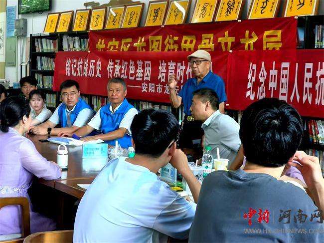 中新河南網(wǎng)(周毅軍 葵向)在安陽市關(guān)工委紀(jì)念抗日戰(zhàn)爭勝利80周年,慶祝中國人民解放軍建軍節(jié)98周年的通知精神鼓舞下,安陽市科協(xié)、市反邪教協(xié)會、龍安區(qū)關(guān)工委七月二十六日下午在龍圖街甲骨文書屋舉辦了“憶抗戰(zhàn)歷史,講革命故事,學(xué)模范人物”報告會。