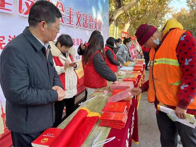 活動現(xiàn)場,工作人員通過懸掛橫幅、設(shè)置咨詢臺、向過往群眾發(fā)放憲法知識宣傳頁、提供免費法律咨詢等形式,引導(dǎo)廣大群眾自覺擁護(hù)和信仰憲法權(quán)威,做憲法的忠實崇尚者、自覺遵守者、堅定捍衛(wèi)者。
