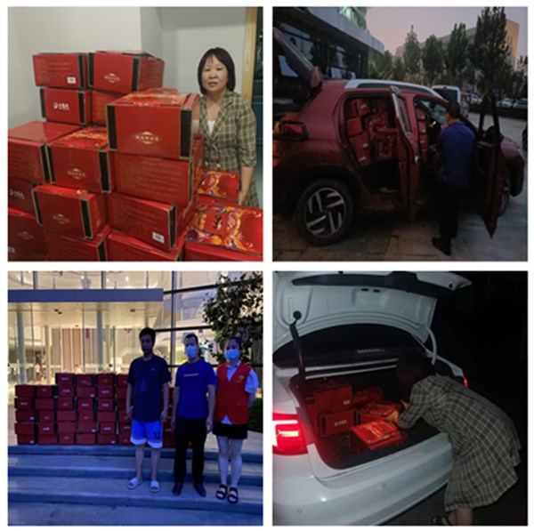 7月23日當(dāng)天征集近五萬元物資,包括被子、火腿腸、面包、八寶粥、方便面等,在征集物資的同時聯(lián)系到梓聞社工理事長張俊紅女士,隨后張總對接了民政局及慈善總會,為龍門實驗中學(xué)那里剛來的165名官兵及豐慶路街道辦送去了這些救援物資。大家協(xié)同當(dāng)?shù)刂驹刚咭黄鸢徇\物資,為我們的城市注入了又一抹希望。