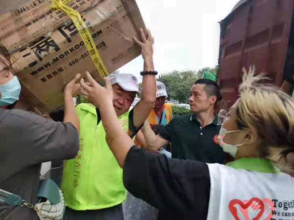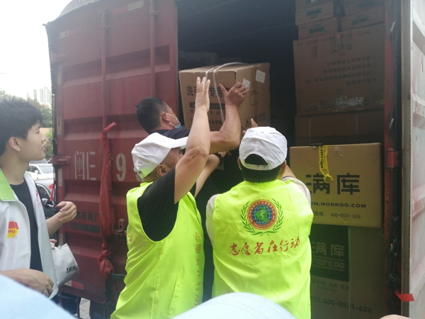 當(dāng)?shù)弥珖鞯貝坌娜耸康木仍镔Y到鄭時,省健康產(chǎn)業(yè)發(fā)展研究會志愿團的廣大志愿者聞“訊”而動,“豫”愛同行。志愿者張允民、喬博文沖鋒在裝卸救援物資前沿,在酷熱的天氣,密閉燥熱的車廂里擺裝物資,滿頭大汗,衣服都遢濕完了,仍不下車休息,楊冬、尚雯等眾多女士志愿者連續(xù)多日搬運救援等物品,有時裝卸物資到凌晨2點左右來支援救災(zāi)一線。他們用自己的實際行動傳遞愛,彰顯河南省健康產(chǎn)業(yè)發(fā)展研究會志愿團的奉獻精神。