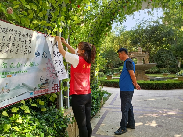活動(dòng)開始前,社工在居民群內(nèi)發(fā)布了書畫作品招募通知,得到了居民們的響應(yīng)。作品展出之際,前來觀賞的居民紛紛夸贊。展出的書畫作品主題鮮明,類型多樣。有飄逸的行書、方正的楷書、優(yōu)美的詩詞、生動(dòng)的國(guó)畫,都同樣表達(dá)了社區(qū)居民對(duì)祖國(guó)母親美好的祝愿與熱愛,讓來往的居民們不禁停下腳步欣賞。提供書法作品叔叔說:“這樣的活動(dòng)很好的宣傳了書法藝術(shù),希望可以通過活動(dòng)認(rèn)識(shí)更多對(duì)書法感興趣的居民,大家相互交流和學(xué)習(xí)。”