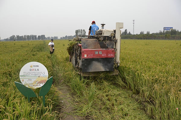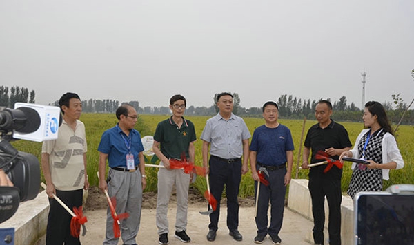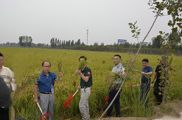 河南:新鄉(xiāng)市平原新區(qū)稻香源舉行蟹田稻收割開鐮儀式