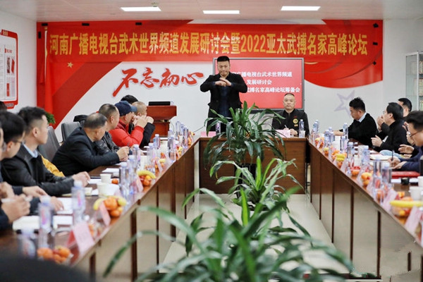 首先武術世界頻道總監(jiān)周海濤致歡迎詞,向參會嘉賓介紹了武術世界頻道的定位和2022年發(fā)展規(guī)劃。