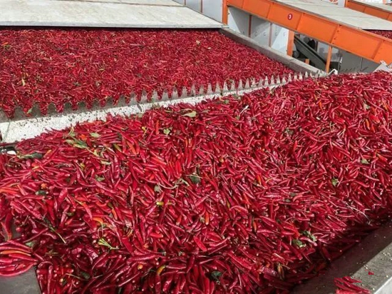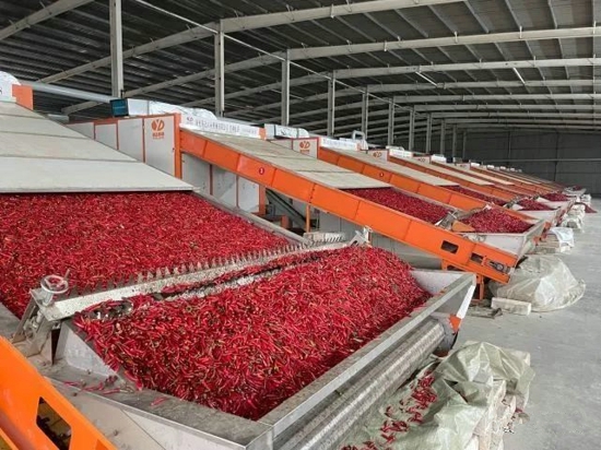 “截至目前,園區(qū)現(xiàn)已建成日處理能力超400噸的鮮辣椒烘干基地,同時還完成了干辣椒質量分級標準及其設備體系的設計和初步建設,并基于對消費市場的調研進行了辣椒粉、辣椒段等辣椒初加工產(chǎn)品的開發(fā),且已取得了市場相關企業(yè)的認可。”福瑞達現(xiàn)代農業(yè)產(chǎn)業(yè)園副總經(jīng)理閆夢爽介紹,未來產(chǎn)業(yè)園計劃繼續(xù)加大投資,擴大鮮辣椒烘干、干辣椒質量分級及辣椒制粉切段等初加工生產(chǎn)能力,最終達到日處理鮮辣椒1500噸、日分級干辣椒1500噸,日生產(chǎn)辣椒粉、段100噸的加工生產(chǎn)能力。