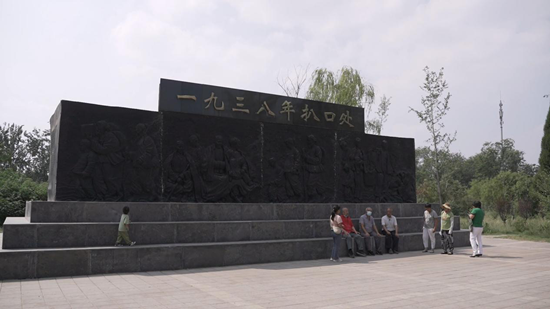 9月14日下午,在黃河花園口記事碑前聆聽村老干部講當(dāng)年花園口決堤事件的真實(shí)情況。