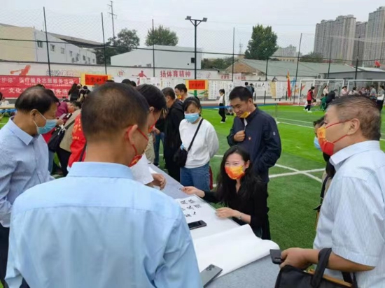 在國慶來臨之際,為弘揚(yáng)傳統(tǒng)文化精神,講好傳統(tǒng)文化故事,深入開展開展五星支部創(chuàng)建活動,9月24日上午,鄭州市航海西路街道茜城花園社區(qū)聯(lián)合轄區(qū)乾運(yùn)文體中心于開展“趕考路上有我描繪出彩鄭州”之文化進(jìn)社區(qū)現(xiàn)場揮毫?xí)嫶筚悾筚愌埡幽鲜媽W(xué)會書畫藝術(shù)家們現(xiàn)場指導(dǎo)。