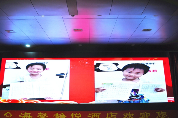 獎典禮現(xiàn)場視頻重溫了整個賽事并展示了本次大賽的部分獲獎作品,獲獎選手們手握獲獎證書看到當(dāng)初自己參加比賽的畫面和獲獎作品出現(xiàn)在大屏幕上,激動地指給身邊的家長,“媽媽你看,那是我寫的”。參賽選手代表在現(xiàn)場視頻中表達了自己學(xué)習(xí)書法藝術(shù)的初心,一等獎獲得者王博媽媽,馮一普媽媽送上了早已準(zhǔn)備好的錦旗。氣氛熱烈而令人感動,飛蘭苑書法黃校長表示,每一位學(xué)生都應(yīng)該傳承中華文明,弘揚書法藝術(shù),學(xué)生只有寫一手好字,才能更好的傳承中華的傳統(tǒng)文化。