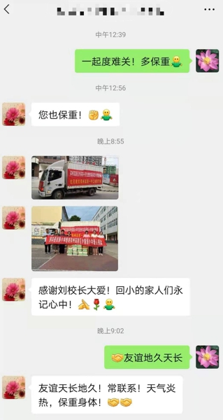 到達(dá)扶溝縣回族小學(xué),萬(wàn)老師與方校長(zhǎng)進(jìn)行對(duì)接,對(duì)方握著萬(wàn)老師的手說(shuō):“感謝鄭州高新區(qū)外國(guó)語(yǔ)小學(xué)的援助,之前外小的老師來(lái)我們這里支教,這次又給我們送來(lái)物資,我替孩子們謝謝外小,謝謝劉校長(zhǎng)!