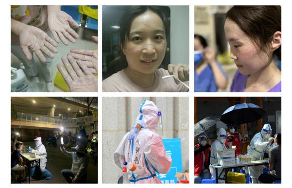 疫情當(dāng)前,群眾也紛紛用自己的方式自發(fā)地為防疫盡一份力。一把為醫(yī)護(hù)人員揮動(dòng)的搖扇;一輛市民自己改造的核酸檢測(cè)車;核酸檢測(cè)點(diǎn)突然停電而舉起的點(diǎn)點(diǎn)星光;一群深夜排隊(duì)等待做核酸檢測(cè)的爺爺奶奶;居民為醫(yī)務(wù)人員自制的冰塊馬甲;醫(yī)務(wù)人員背后悄悄舉起的遮陽(yáng)傘……
