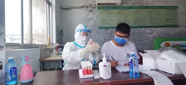 李雪濤老師在得知村里需要志愿者,立馬報名加入其中,每天7點到村委會幫助檢測人員填寫信息、貼檢測試管條形碼、數(shù)核酸檢測棉簽、記錄檢測人員短碼、為檢測人員介紹核酸檢測時的注意事項,服務(wù)群眾600人。