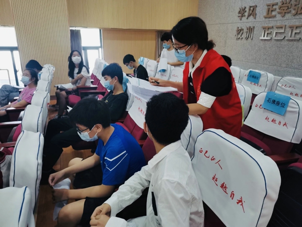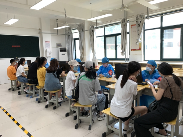 教師提前來(lái)到接種疫苗場(chǎng)地為學(xué)生提供幫助