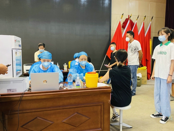 8月20日上午,五龍口小學(xué)教師志愿者提前到達(dá)高新區(qū)八一中學(xué)新冠疫苗接種點(diǎn),按照疫苗接種各環(huán)節(jié)要求,有序引導(dǎo)家長(zhǎng)和孩子們排隊(duì)掃碼、領(lǐng)取告知書(shū);接種等待區(qū)的志愿者耐心引導(dǎo),及時(shí)解決家長(zhǎng)的疑惑;疫苗接種后及時(shí)做好學(xué)生信息統(tǒng)計(jì),安撫學(xué)生緊張情緒......