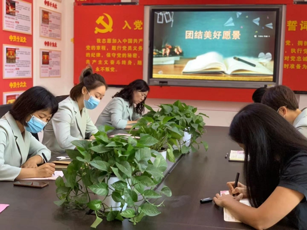 黨支部書記李莉娟帶領(lǐng)全體教師學(xué)習(xí)師德建設(shè)相關(guān)工作