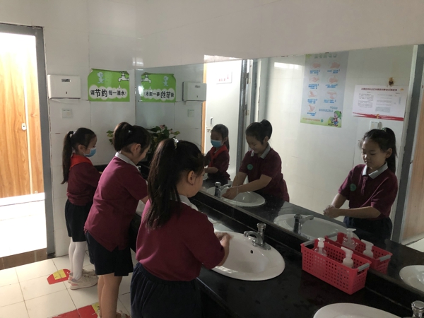 再看,整齊的步伐,課間同學(xué)們有序的如廁。讓我們拉近鏡頭,我們的學(xué)子正在用自己的行動踐行七步洗手法,衛(wèi)生安全牢記于心。