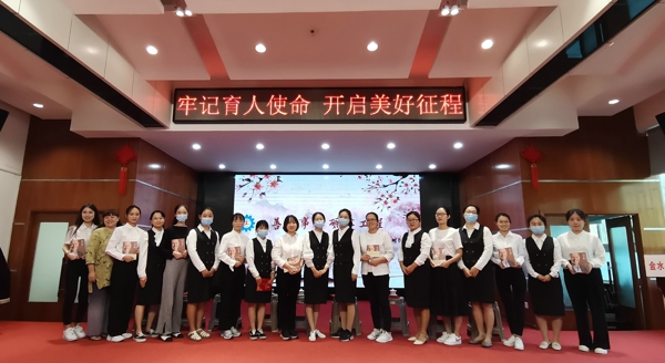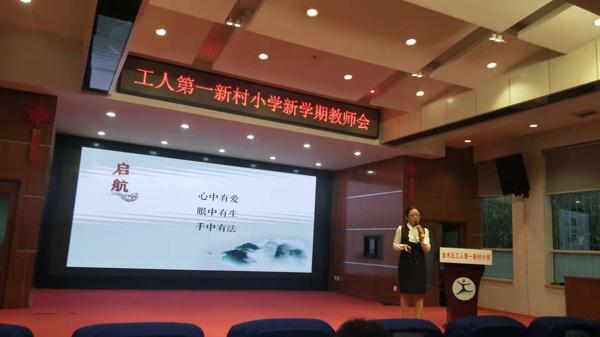 在新教師精彩的才藝展示后,孫校長向全體教師介紹了新教師,并寄予新教師希望:“心中有愛,眼中有生,手中有法。希望青年教師們努力工作,積極鉆研教學(xué),不負(fù)韶華!”