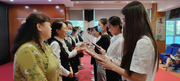 接著,導(dǎo)師代表崔璐君與年輕教師共勉,她希望青年教師們能虛心學(xué)習(xí),不斷向前;能立足課堂,承前研磨;能把握機(jī)遇,突破自我;能互相學(xué)習(xí),教學(xué)相長。徒弟代表范甜甜老師表示在師傅的引領(lǐng)下,會積極學(xué)習(xí),以夢為馬;奉獻(xiàn)青春,努力做一名優(yōu)秀的教師。