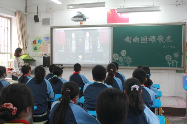 9月27日南學(xué)街小學(xué)在教室共同觀看愛國主題宣傳視頻培養(yǎng)愛國情感