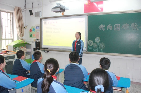 在主題隊(duì)會(huì)活動(dòng)中,各中隊(duì)別出心裁,開展了一系列慶;顒(dòng)。在五(1)中隊(duì)教室,輔導(dǎo)員老師宋曉娟帶領(lǐng)同學(xué)們觀看了愛國教育主題宣傳片,一起回顧了新中國的發(fā)展歷程,增強(qiáng)了隊(duì)員們的民族自豪感,同時(shí)宋曉娟還通過愛國知識(shí)競答等形式不僅豐富了孩子們的知識(shí),還培養(yǎng)了他們的愛國之情。在六(1)中隊(duì),輔導(dǎo)員張荷老師舉行了小型的愛國詩詞朗誦活動(dòng),孩子們興趣高昂,積極參與,一句句優(yōu)美的詩詞和飽含深情的祝福語表達(dá)了孩子們對(duì)祖國的熱愛,對(duì)家鄉(xiāng)的熱愛,大家紛紛表示要將愛國之情融入學(xué)習(xí)生活的每一天,從小努力奮斗,將來也要通過自己的努力報(bào)效祖國。