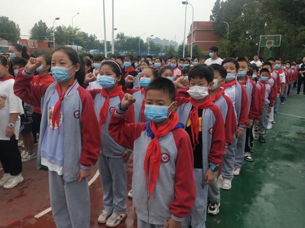 負(fù)責(zé)本次升旗儀式的是五二中隊(duì)。在鏗鏘嘹亮的口號(hào)聲中,國旗護(hù)衛(wèi)隊(duì)成員邁著有力、整齊的步伐護(hù)送國旗走向升旗臺(tái),伴隨著莊嚴(yán)高亢的旋律,鮮艷的五星紅旗冉冉升起,全體師生莊嚴(yán)肅立,分別向國旗敬隊(duì)禮、行注目禮。在鮮艷的紅旗下,五二中隊(duì)的少先隊(duì)員唱響動(dòng)人的歌曲《我和我的祖國》,“我最親愛的祖國,我永遠(yuǎn)緊依著你的心窩”。少先隊(duì)員們用自己的聲音向祖國表達(dá)著祝福。緊接著,五二中隊(duì)輔導(dǎo)員老師魏冬曉進(jìn)行了國旗下講話,她告訴少先隊(duì)員:我們中華民族是一個(gè)偉大的民族,愛國主義精神是我們這個(gè)民族最美的花。作為新時(shí)代的少先隊(duì)員,我們應(yīng)該用行動(dòng)詮釋愛國之心。她向全體少先隊(duì)員發(fā)出倡議:少先隊(duì)員要從身邊的小事做起,尊敬師長,團(tuán)結(jié)同學(xué),愛護(hù)學(xué)校的一草一木,做更好的自己。最后德育主任張一對(duì)全體少先隊(duì)員進(jìn)一步提出了要求:希望少先隊(duì)員能夠銘記職責(zé)與使命,好好學(xué)習(xí),天天向上,以良好的精神風(fēng)貌迎接建國72周年。
