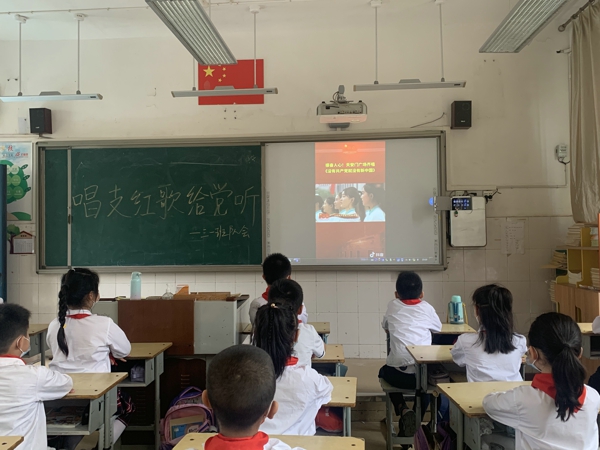 活動(dòng)中,輔導(dǎo)員楊瑞老師帶領(lǐng)隊(duì)員們一起回顧了黨的光輝歷程;為隊(duì)員們介紹了紅歌的創(chuàng)作背景、感人故事、詞曲含義;帶領(lǐng)隊(duì)員們傳唱了一首首紅色經(jīng)典歌曲。一首紅歌,記錄一段崢嶸歲月;一首紅歌,象征一面光輝旗幟;顒(dòng)后,隊(duì)員李慕喆說道:“我們能有今天的美好生活來之不易,是無數(shù)先烈用鮮血和生命換來的。建黨一百周年,我們通過唱紅歌的方式來感謝黨給我們創(chuàng)造了現(xiàn)在的美好生活。”
