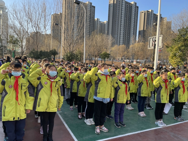 負責本次升旗儀式的是三六中隊。在雄壯的國歌聲中,鮮艷的五星紅旗徐徐升起,迎風飄揚。三六中隊的部分少先隊員朗誦了《歡慶元旦》,隊員們朗誦到:“在新的一年里,我們要更加努力學習本領(lǐng)。像戰(zhàn)士攻下一個個碉堡,我們要向知識的殿堂勝利進軍。”隨后,三六中隊輔導員李哲老師做了《歡慶元旦筑夢未來》主題講話,她告訴同學們:2022年是新的一年,新的一年新的開始,希望同學們珍惜時光,策馬揚鞭,持之以恒,鍥而不舍,以飽滿的熱情迎接新的挑戰(zhàn),以不懈的追求完成優(yōu)秀的學業(yè)!同時她也告誡同學們,面對新的一年,新的挑戰(zhàn),要付出更加艱辛的努力,才能收獲累累碩果。
