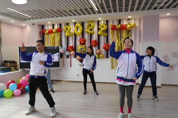 在教師活動(dòng)中,校區(qū)教師也圍繞“感恩遇見”為主題,開展了別樣的元旦聯(lián)歡活動(dòng)。老師們或唱或跳,在祥和、溫馨的氛圍中一起慶祝元旦。最后,校區(qū)執(zhí)行校長(zhǎng)劉彥霞也向老師們提出新年期許,表達(dá)新年祝福。