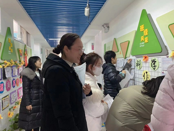 年級(jí)長(zhǎng)和科學(xué)教師一起評(píng)選優(yōu)秀科技作品