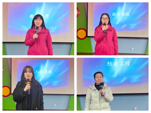 真打?qū)嵏稍俪霭l(fā),乘風(fēng)破浪向未來。新學(xué)期全面工作部署會上,劉娜校長總結(jié)了學(xué)校2021年的重要項目與目標(biāo)達成情況,回顧了喜人的成績,梳理了需進一步優(yōu)化的不足。她強調(diào):站在新的起點上,我們攜“出彩內(nèi)涵”向未來。國家“雙減”政策嚴密落地,“五項管理”扎實推進,減負提質(zhì)需要我們更加專業(yè)、更加深邃。處在外小內(nèi)涵發(fā)展的關(guān)鍵時期,我們要以“單元疑彩課堂”和“疑彩作業(yè)”為核心抓手精準(zhǔn)開展教研科研工作,指向?qū)W生核心素養(yǎng)與教師專業(yè)發(fā)展,提升育人內(nèi)涵與品質(zhì)。疫情之下,更需要大家有“逢山開路,遇水搭橋”的氣魄,在變化中堅守育人初心,敢于克難攻堅。她鼓勵教師們堅定理想信念,凝聚團隊力量,推進學(xué)校教育高質(zhì)量發(fā)展,為中國出彩少年的培養(yǎng)潛心傾力、無怨無悔。黨支部書記杜志堅,總結(jié)了建黨百年黨史學(xué)習(xí)教育中汲取的精神力量,對“能力作風(fēng)建設(shè)提升年”主題做出重要部署,嚴肅強調(diào)了師德師風(fēng)與工作能力提升的要求。號召全體教師以清正廉潔立心、以一日三省作則,恪盡職守、潛心育人,在工作中講團結(jié)、顧大局,齊心協(xié)力共發(fā)展。隨后,學(xué)校學(xué)習(xí)力、好習(xí)慣、行政事務(wù)、后勤保障等部門負責(zé)人,對新學(xué)期重點工作與發(fā)展目標(biāo)進行了部署,聚焦——筑牢精神堡壘、發(fā)展出彩文化、夯實減負提質(zhì)、深化人人出彩、增值評價育人、打造精品校園六個方面展開。同時,對開學(xué)初防疫、德育、課程、教學(xué)等各方面工作進行了具體安排。確保新學(xué)期目標(biāo)明確、重點突出、章法得當(dāng)、井然有序。
