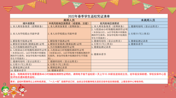 為確保開(kāi)學(xué)平安、平安開(kāi)學(xué),對(duì)自己和他人負(fù)責(zé),請(qǐng)各位家長(zhǎng)查看《學(xué)生返校憑證清單》,根據(jù)個(gè)人情況如實(shí)準(zhǔn)備好相關(guān)材料,按時(shí)間節(jié)點(diǎn)上交,材料務(wù)必準(zhǔn)備齊全方可返校。